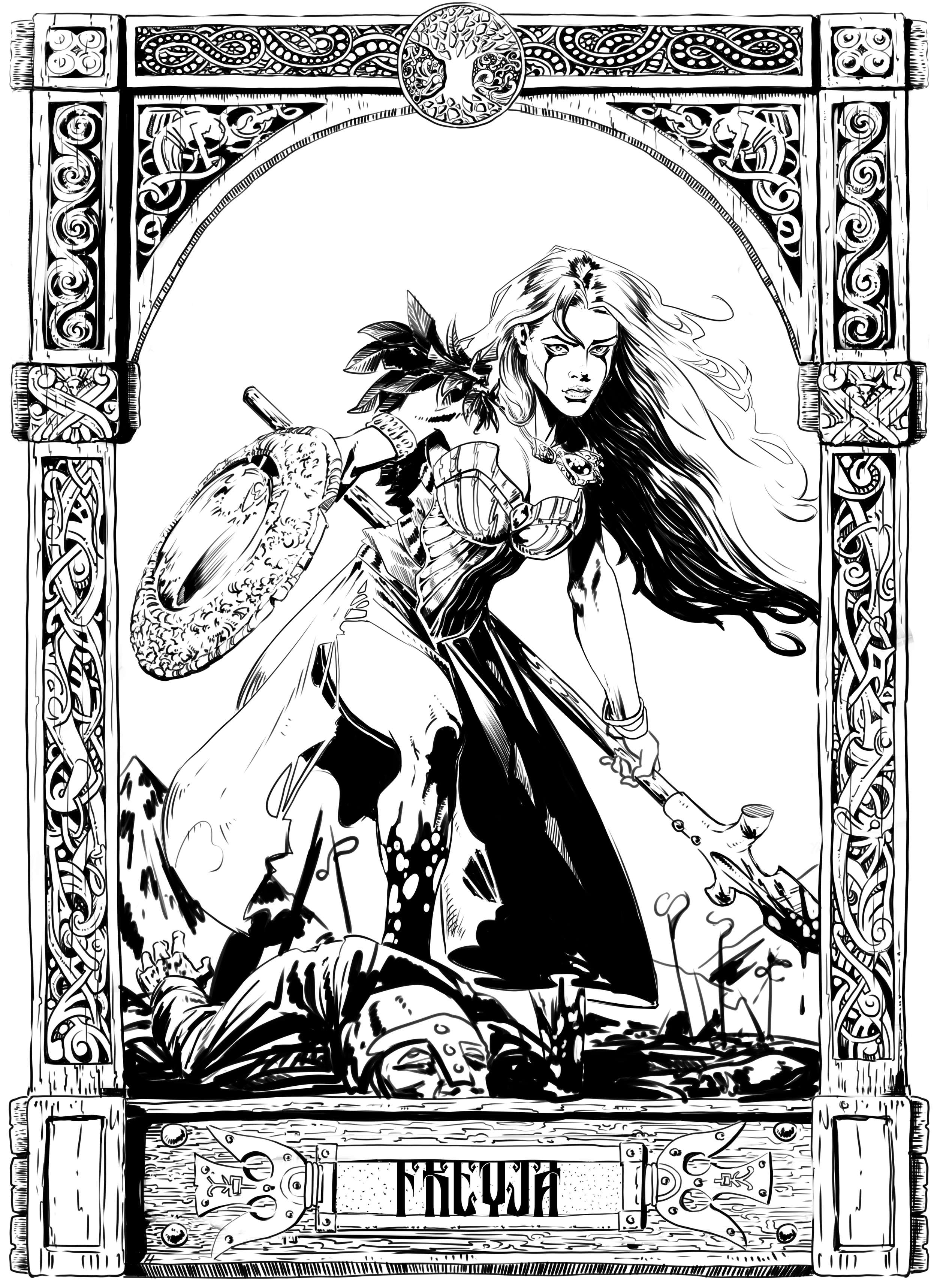 Freyja moves like a whisper behind silk and a roar behind battle cries—a goddess who is many things and never only one. Born of the Vanir and sister to Freyr, she came to Asgard as part of the fragile truce between two divine clans, bringing with her the deep, tangled magic of her people. She is the goddess of love and sex, yes—but also of war, death, and sorcery. She teaches seiðr, the art of fate-weaving, to Odin himself. She claims half the fallen warriors from the battlefield, taking them to her hall Fólkvangr, while the other half go to Valhalla. Where Freyja walks, flowers bloom and ravens turn their heads. She is beauty sharpened to a blade.